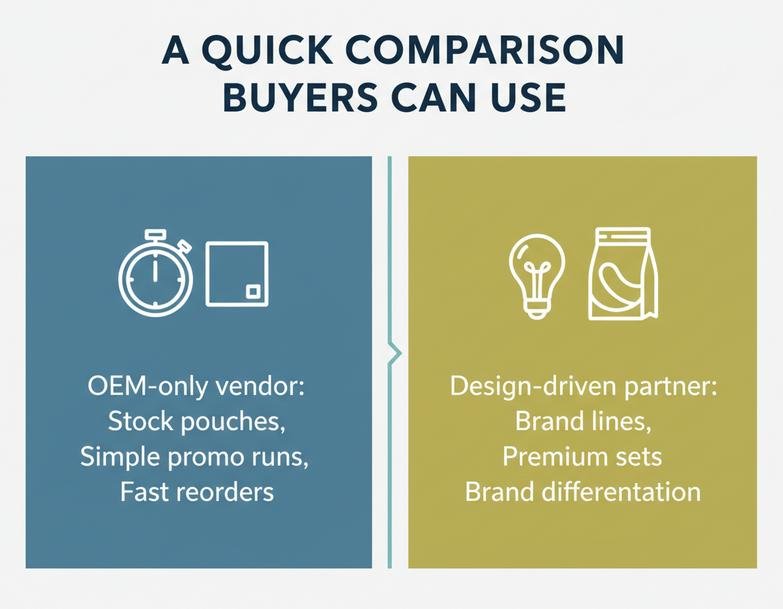 Choose a design-driven partner if the cosmetic bag is part of your product experience, you care about durability and repeat use, or you’re building a coherent SKU family.