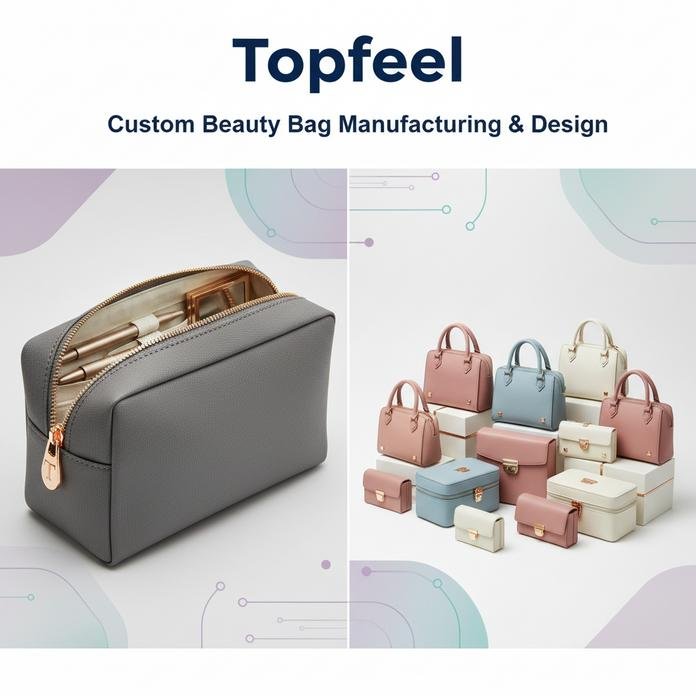 What’s more important than the headline numbers is the way Topfeel frames the product range: cosmetic bags plus adjacent beauty categories (handbags, clutches, train cases, drawstring bags, etc.). That matters because beauty brands rarely launch just one pouch-they launch a family of SKUs that need to look consistent.